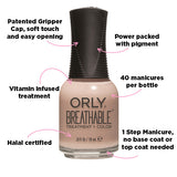 Our ORLY Breathable Nail Polish range doubles up as both a treatment and colour nail polish. Developed with a new advanced oxygen technology, it allows the nail bed to breathe. Our Nourishing Nude Breathable vegan certified Polish is great for: