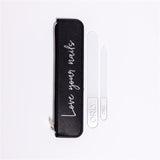 Elevate your nailcare routine with the Love Your Nails Crystal Nail File Set, perfect for everyday use and on-the-go touch-ups. This essential set includes a large and travel-sized crystal nail file, housed in a stylish and durable black case, ensuring they stay protected. Our durable crystal nail files are gentle enough to be used on even fragile nails, working to file any nail type without being too rough.